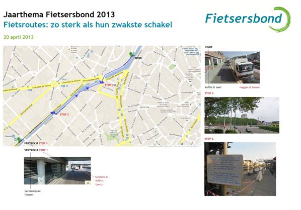 | Beste Fietsplatform,Op 20 april geven we de aftrap voor de actieweek rond het jaarthema Fietsroutes. Met een nationale actie langs een deel van de kanaalroute in Brussel toont de Fietsersbond het belang aan van de continuïteit van een route. Die continuïteit is essentieel voor de veiligheid en het comfort van de fietser.We eisen dat overheden afstappen van het fietspaddenken en fietsroutes creëren met meer visie, samenhang en minder knelpunten.