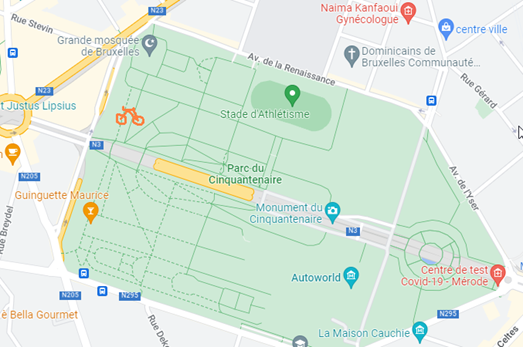 Meeting time: Sunday, 26 June 2022, 15:00 (start of the group ride: 15:30), Parc du Cinquantenaire / Jubelpark, just inside the park near the Schuman entrance (see bicycle on the map).