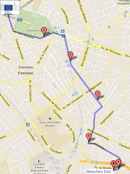 Schuman to Beaulieu East http://www.gmap-pedometer.com/?r=488584